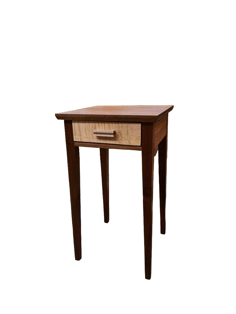 Nine years ago, he completed his first project with hardwood joinery — a walnut pedestal. Increasingly, he took on more ambitious projects learning by trial and error. Sam Dwyer, a master woodworker in Old Hollow, served as his mentor whenever Barry needed advice or instruction. In October 2024, Barry joined Middle Street Gallery, a collection of prominent artists in the county, where his small tables and wooden base lamps are displayed.