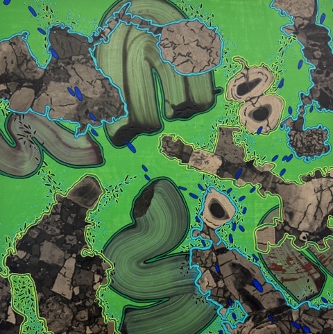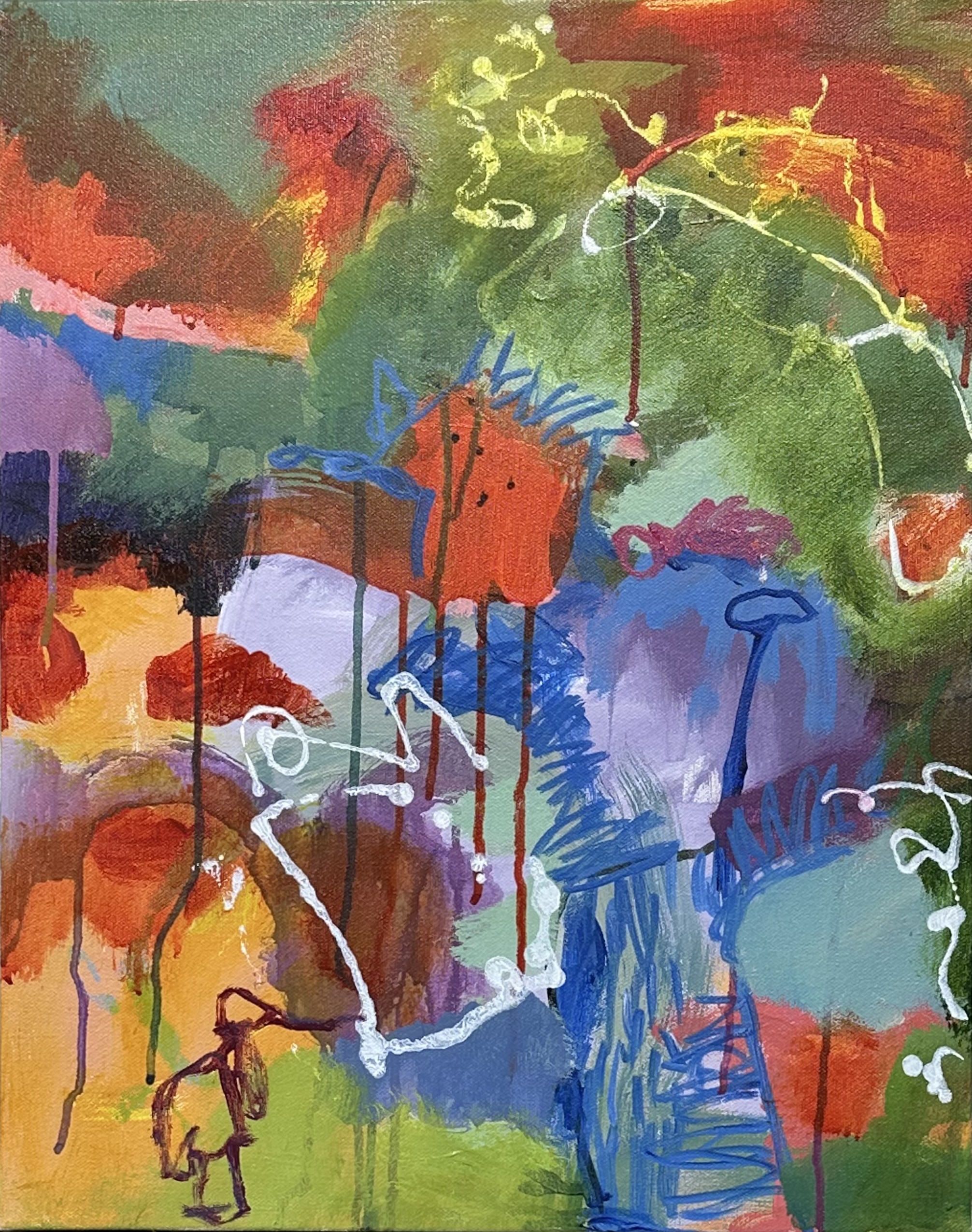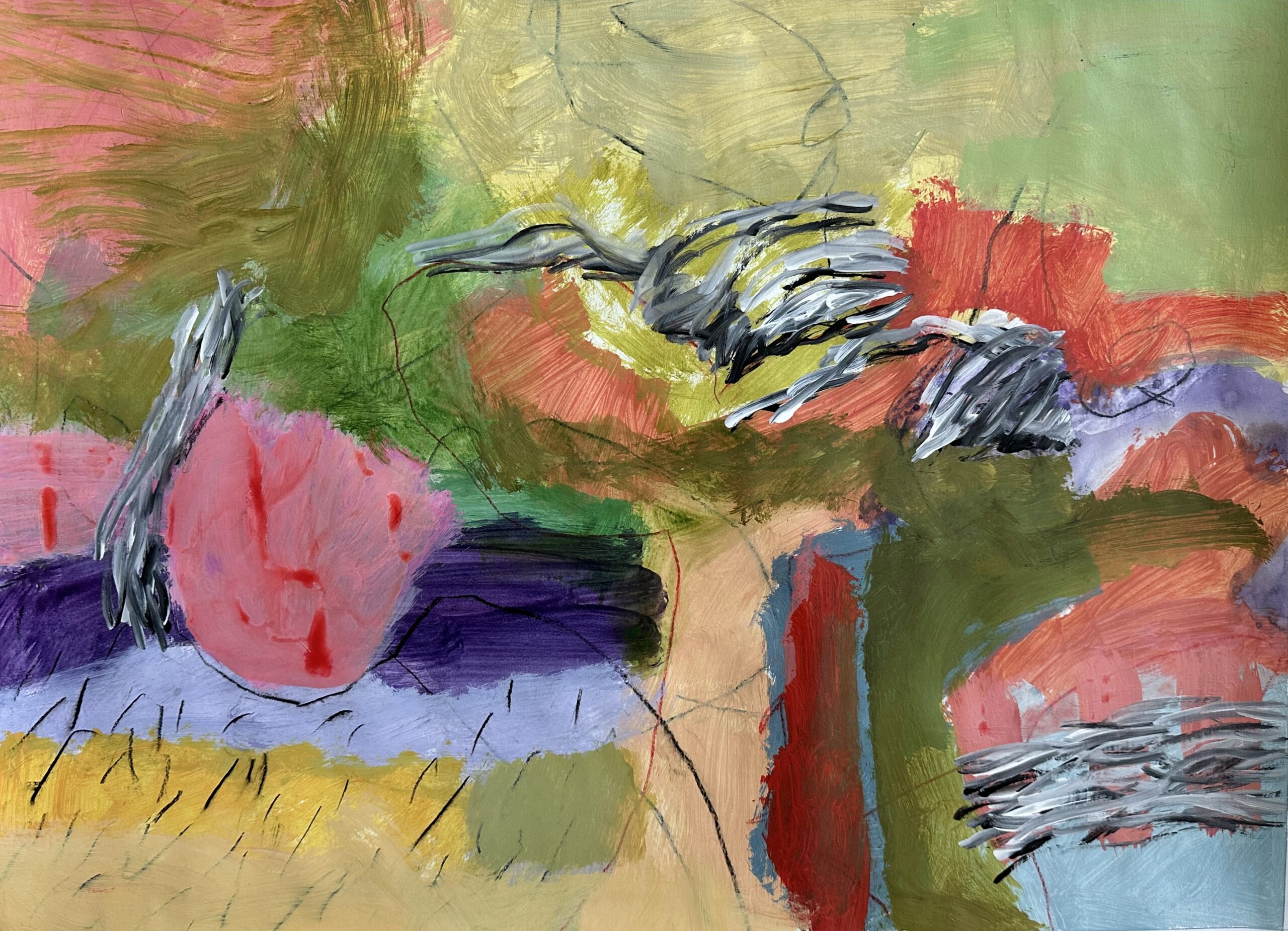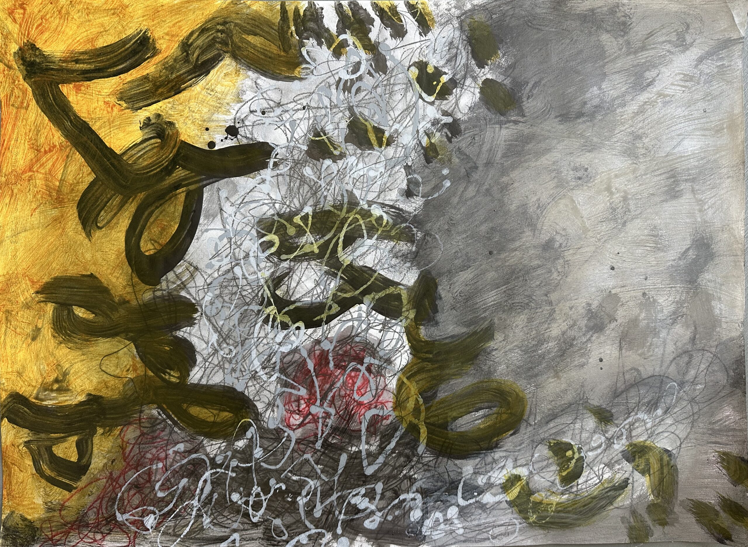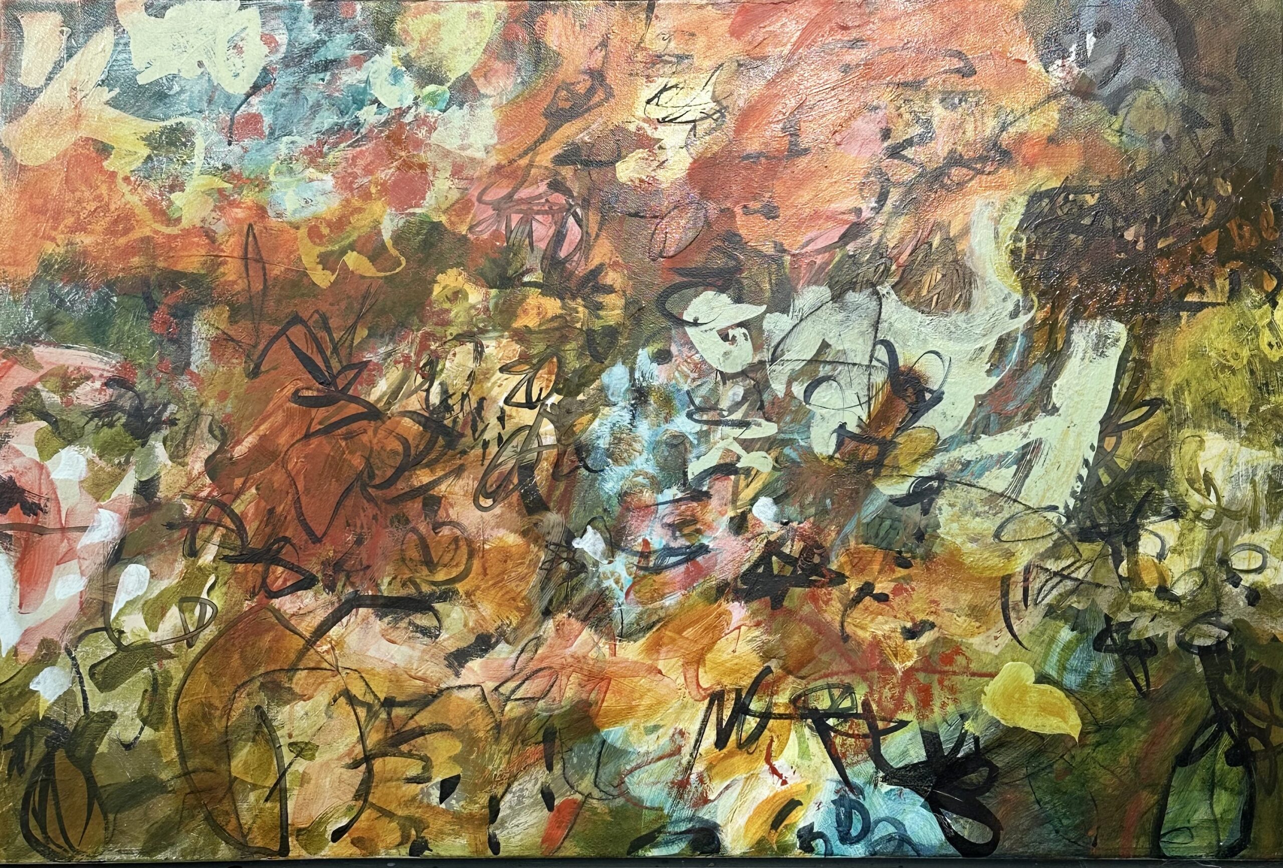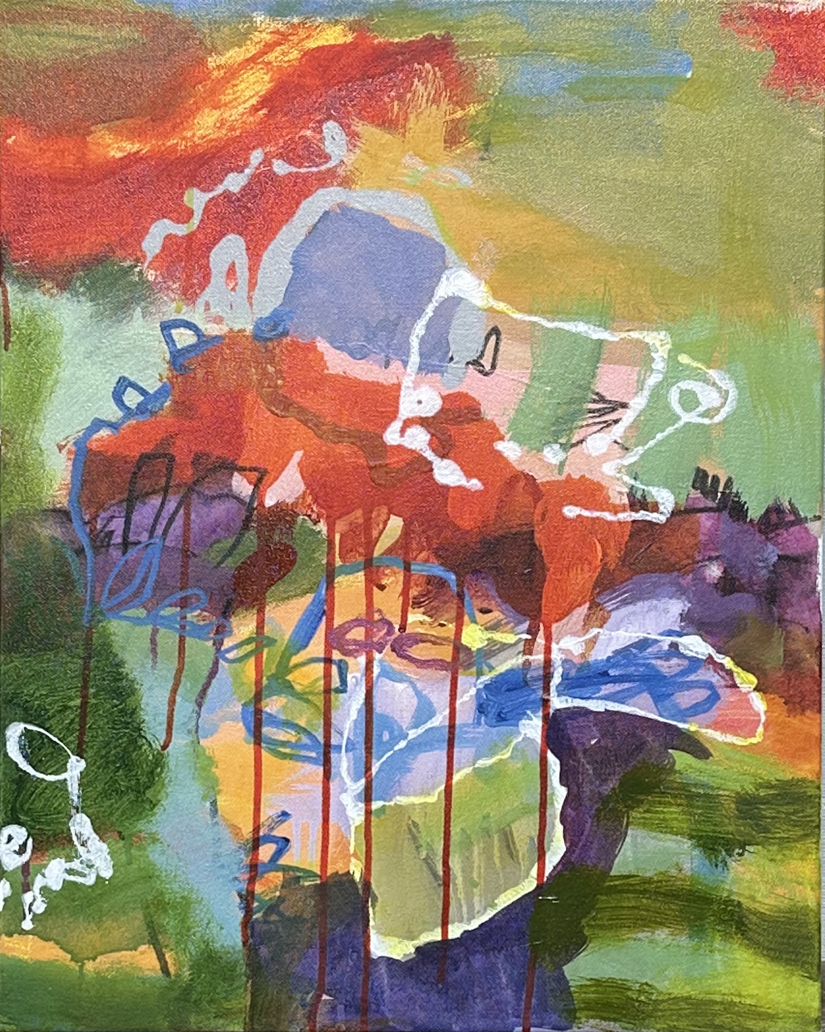 I am an abstract painter working with acrylics and mixed media and occasionally sculpture.  It gives me great joy and contentment when a painting that I have been working on suddenly resolves itself and it’s finished.  I hope that comes through to those viewing my work.